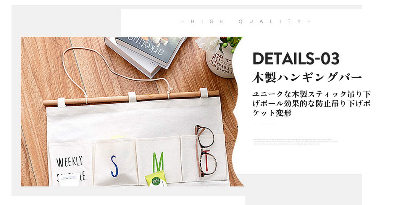 新学期用コットンリネン吊り下げ収納バッグ正面画像