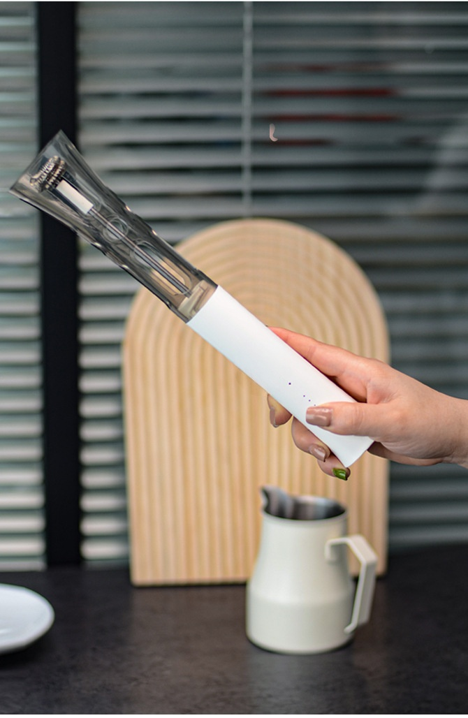 コンパクトな電動ミルク泡立て器の収納イメージ